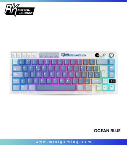 Teclado Mecanico Royale Klugde (RK M65) Ocean Blue – 65% – Tri Modes (BT-2.4Gh-USB) -Switch Cream